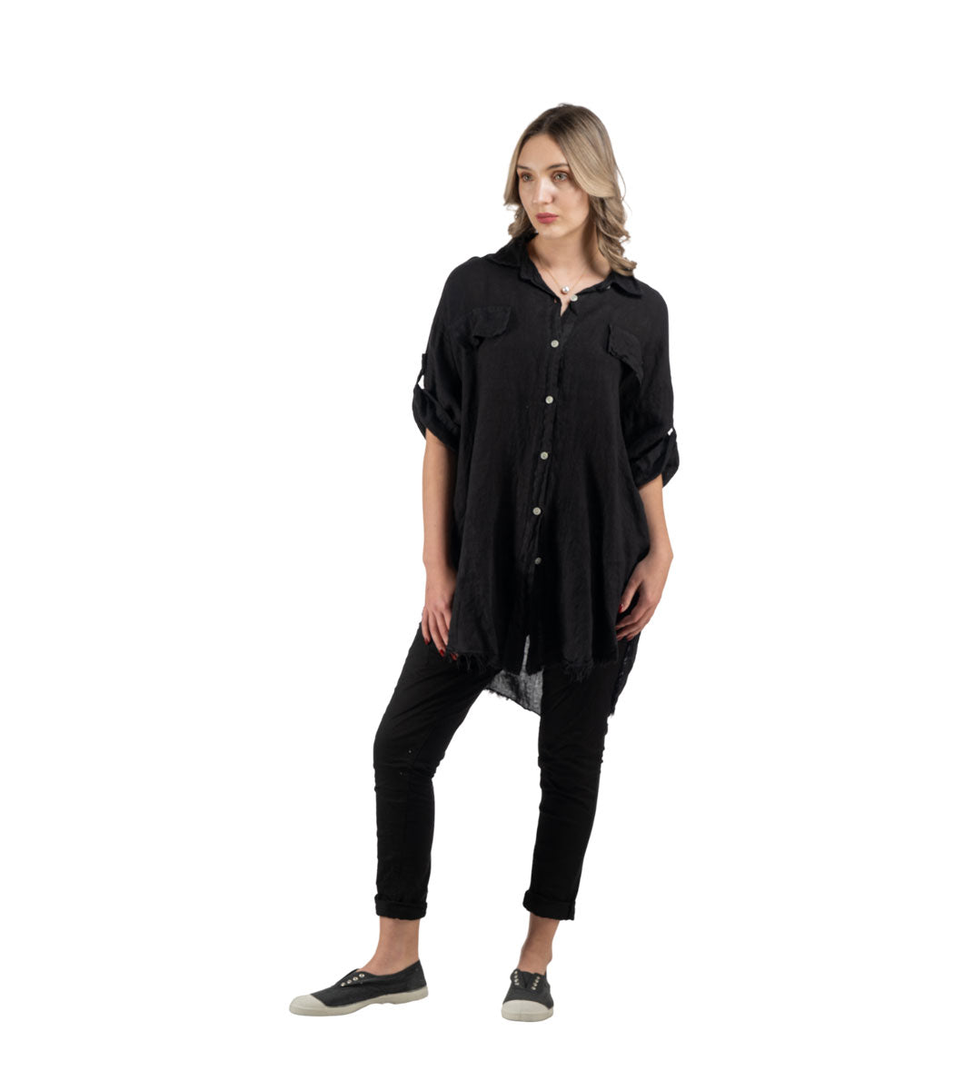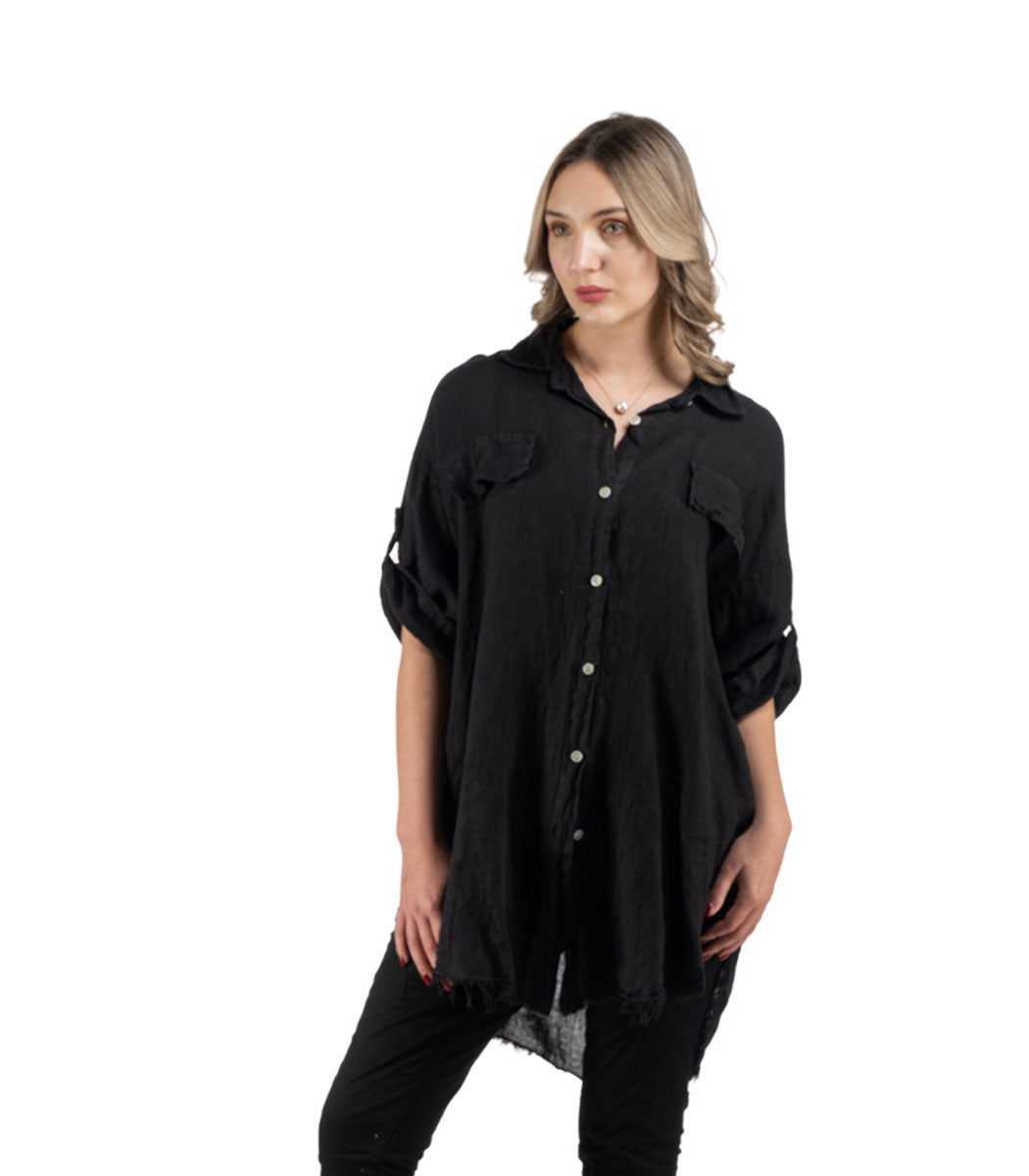 100% Linen oversized raw-edge shirt