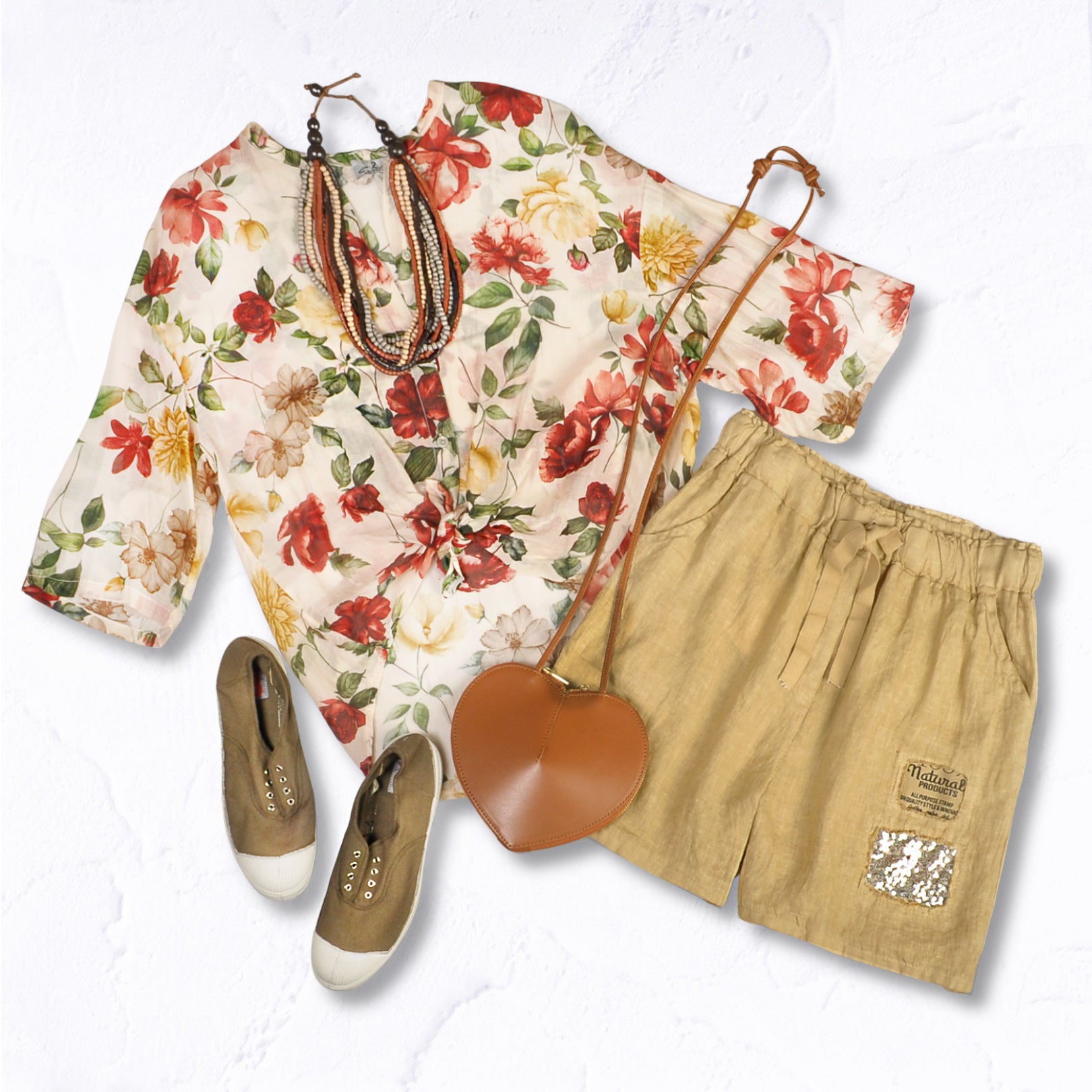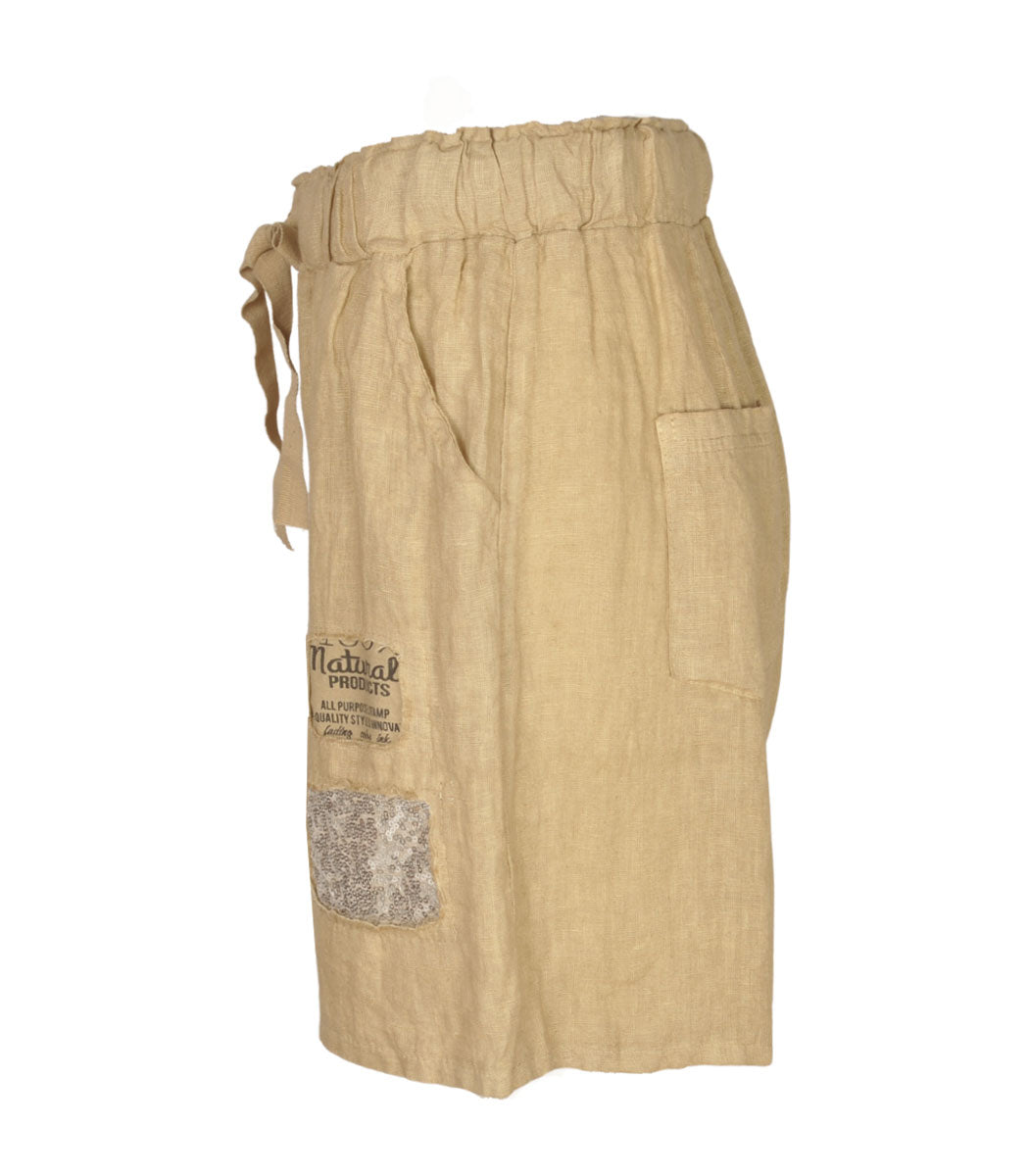 100% Linen sequin patch shorts