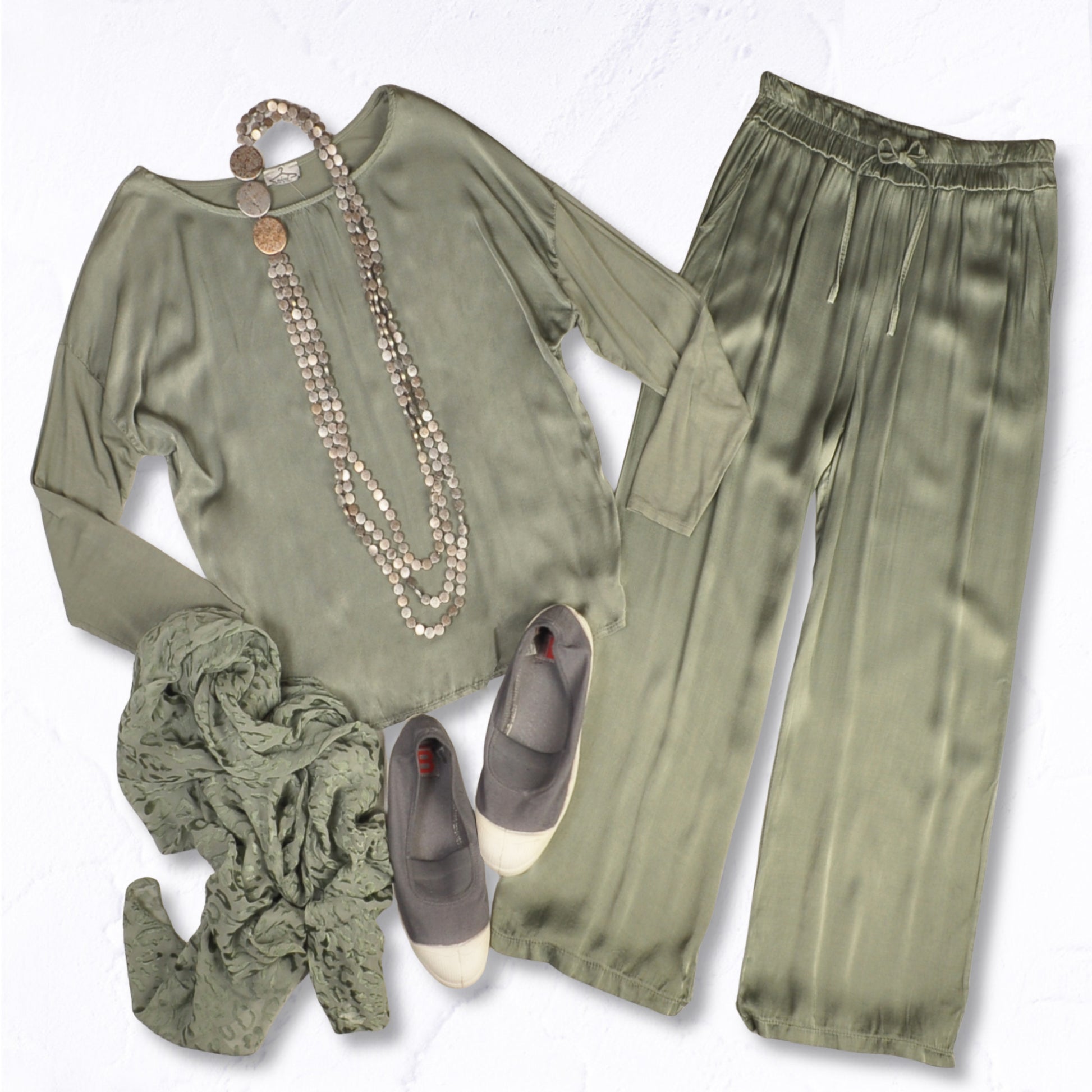 2-Textured long sleeve silky top