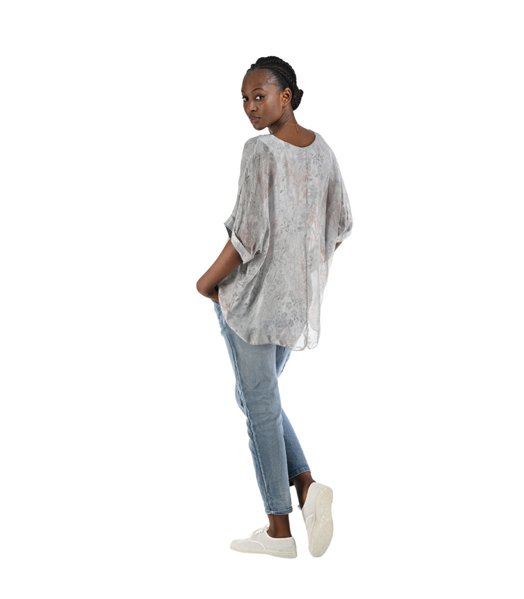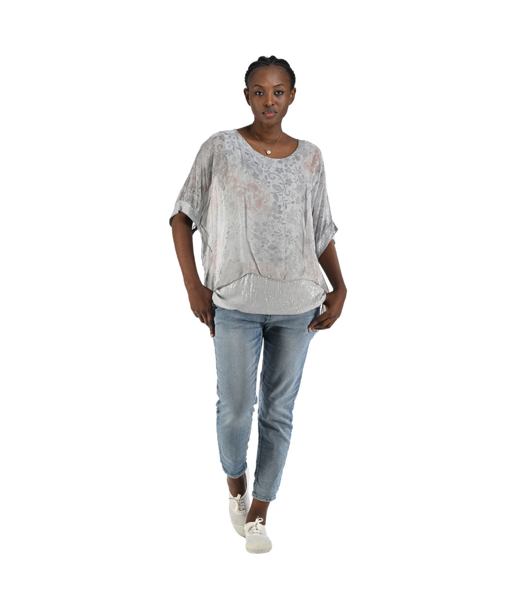 Double layer sequin border silky top