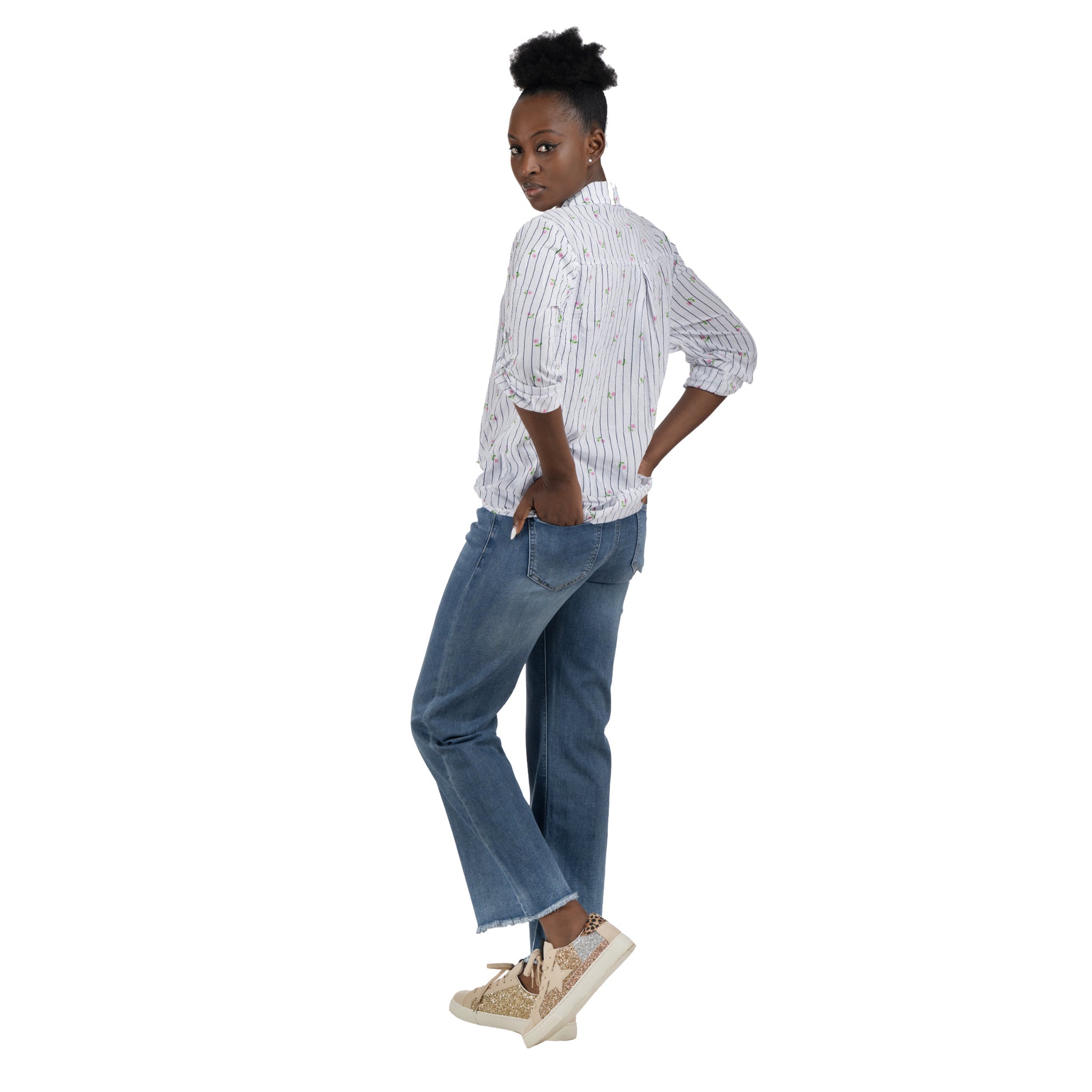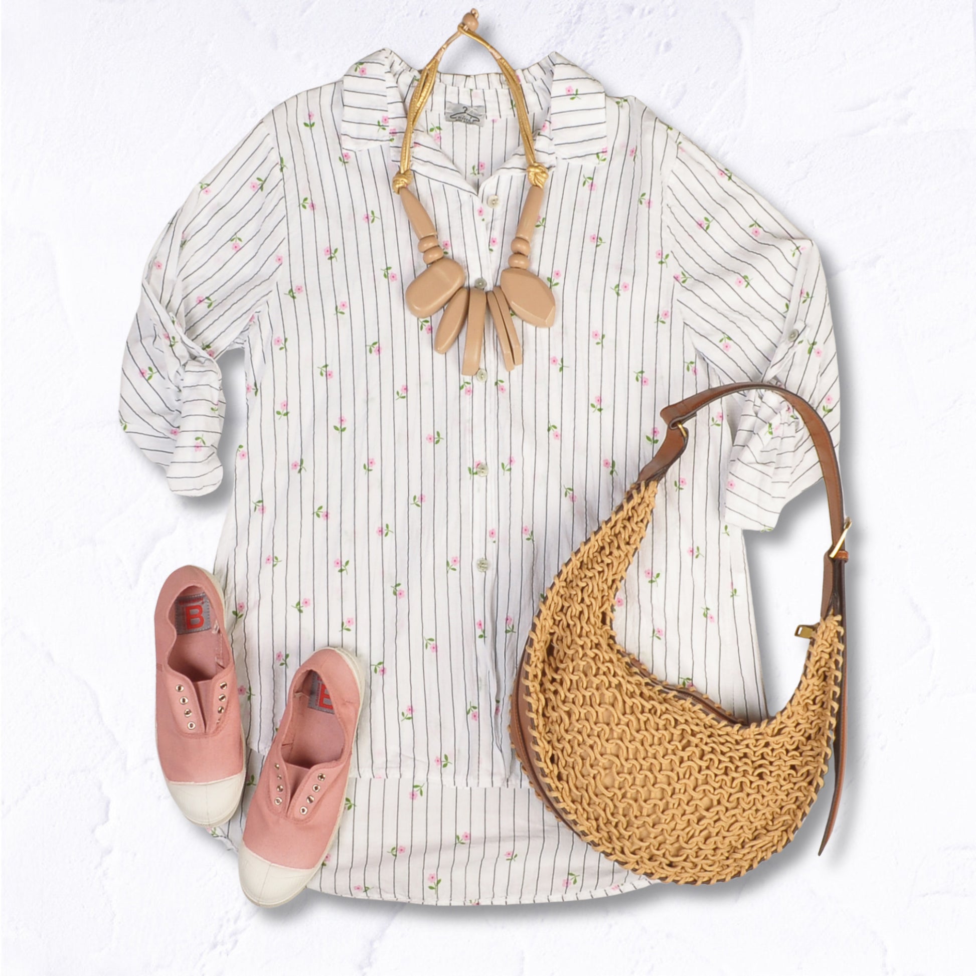 Flower print stripe shirt