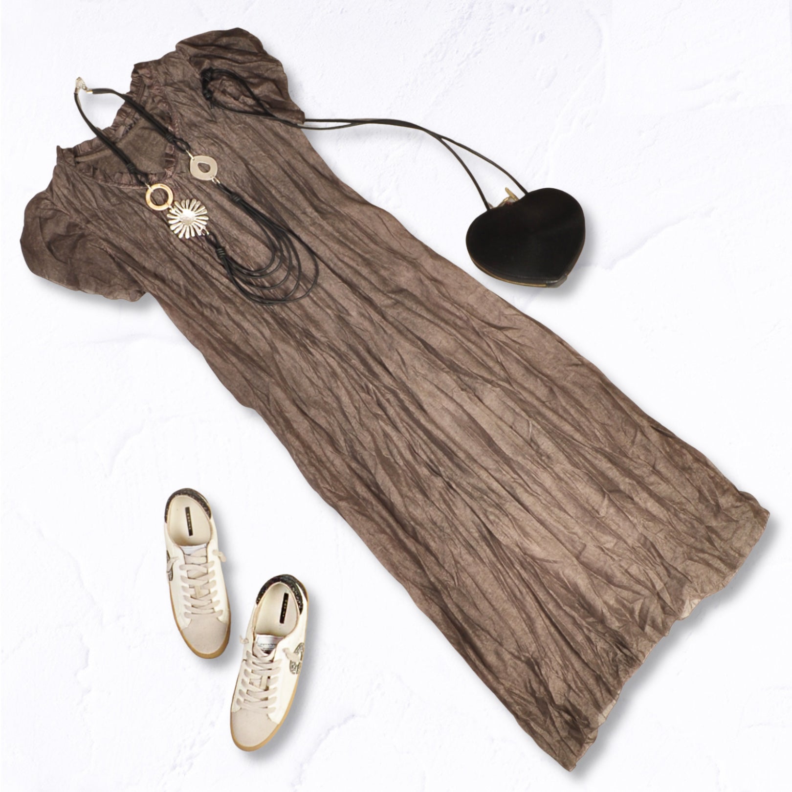 Frill collar silky maxi dress