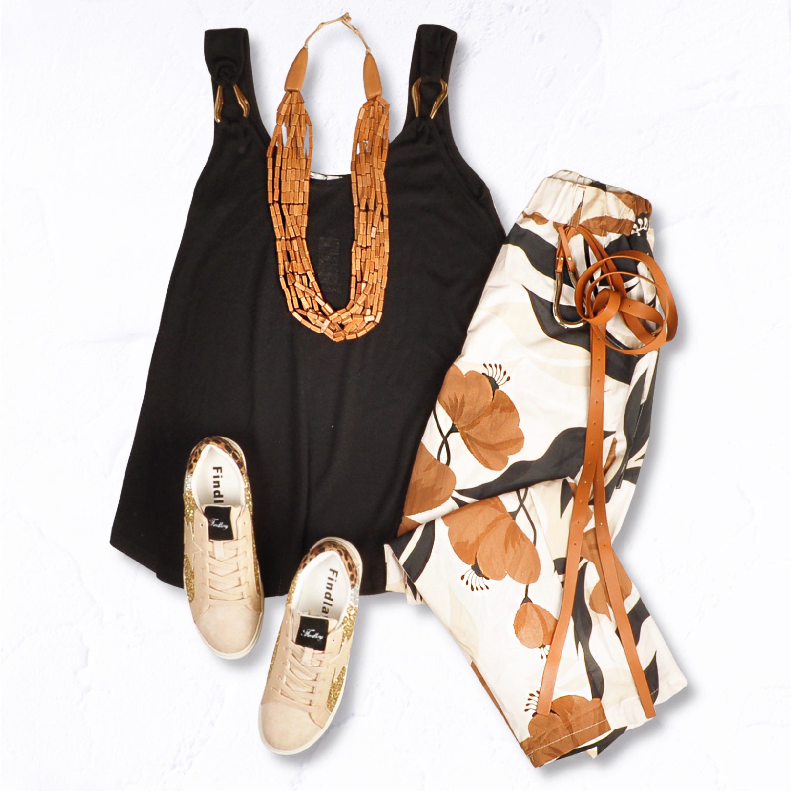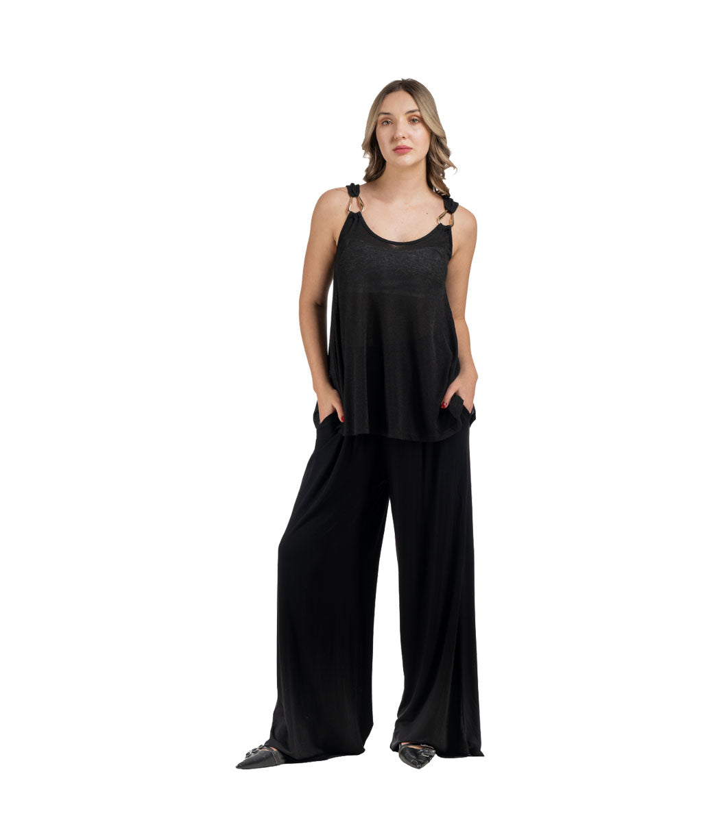 Gold buckle ribbed swing tank top
