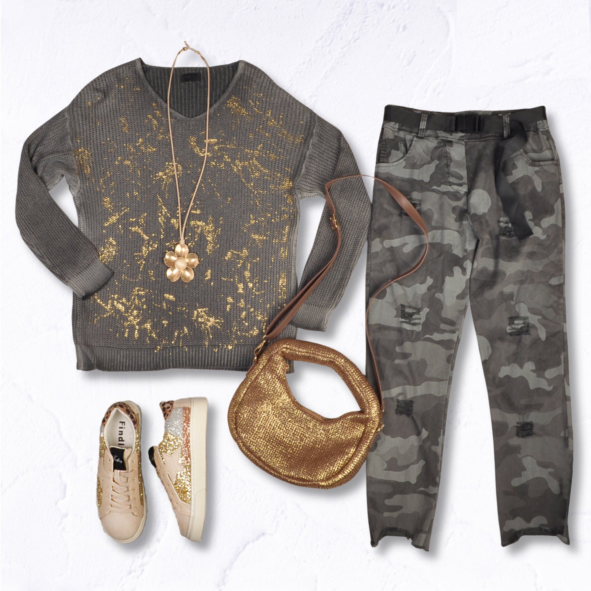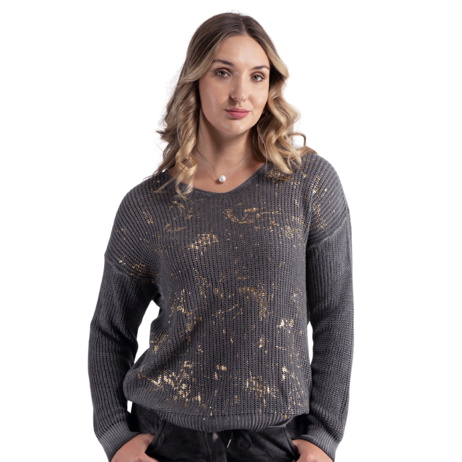 Gold foil print ribbed knit