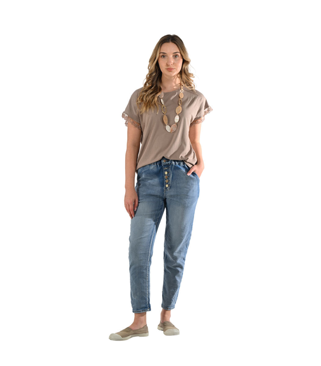 Lace trim sleeve t-shirt