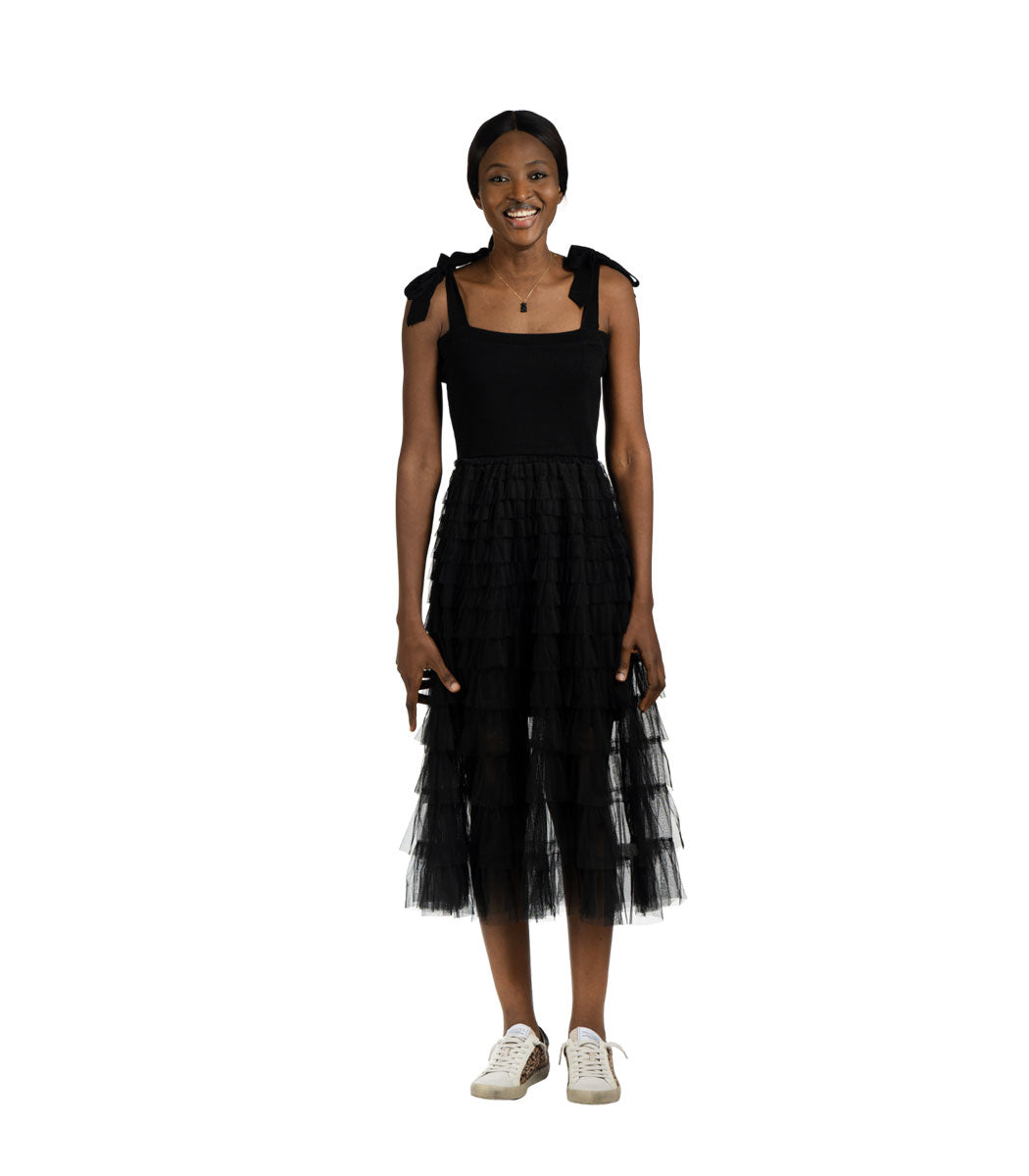 Mesh knit tiered dress