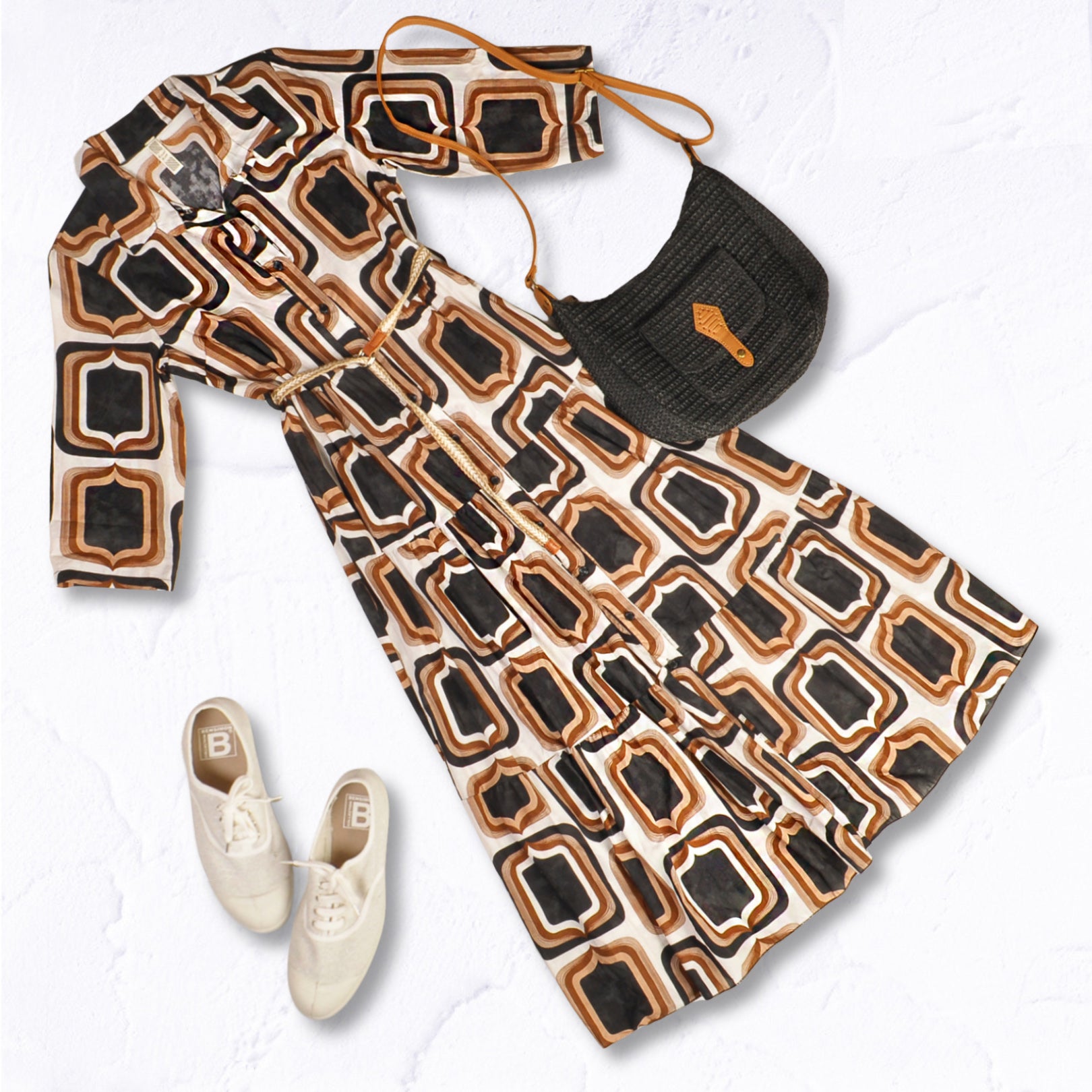 Moroccan print belted dress