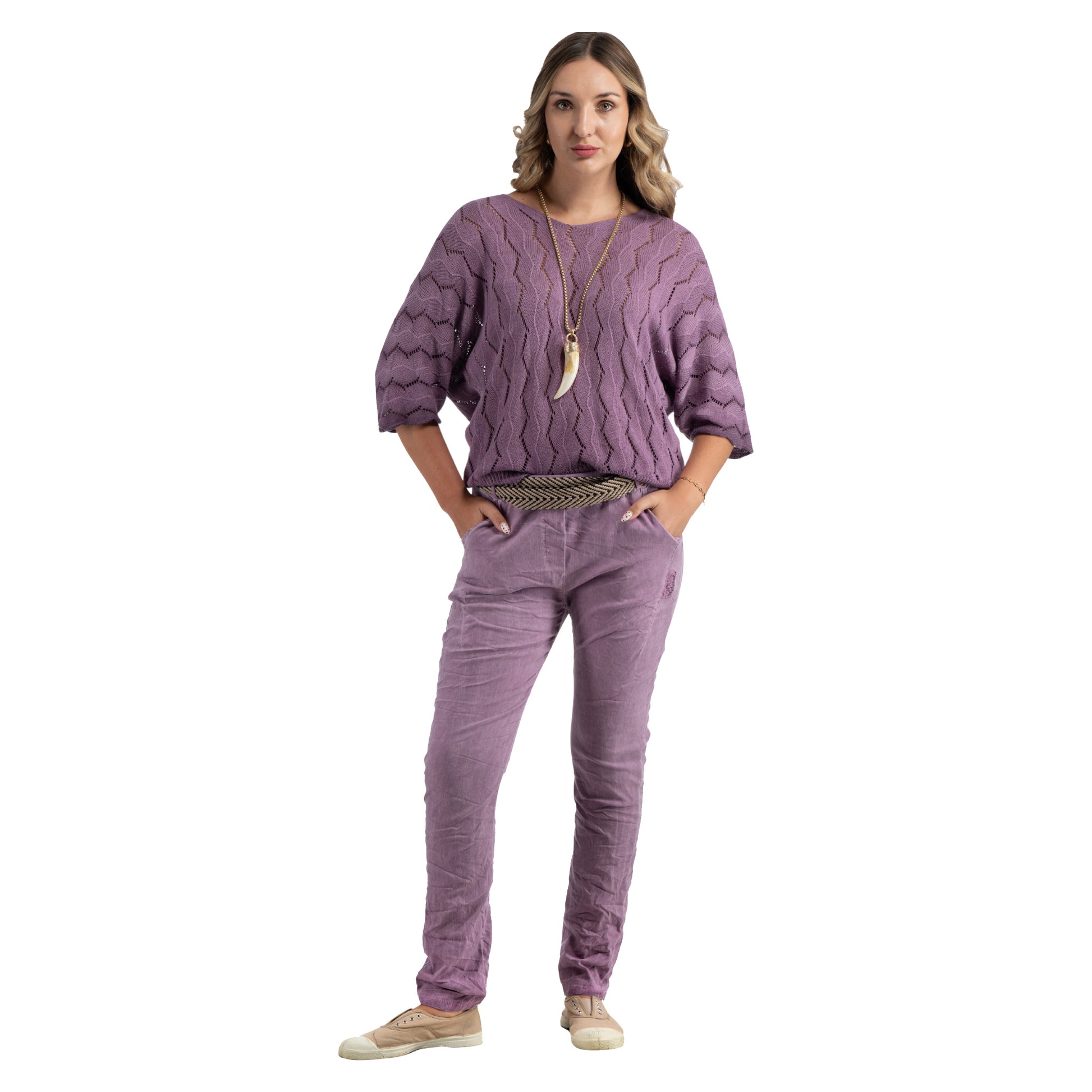 Overdyed zig-zag knit top