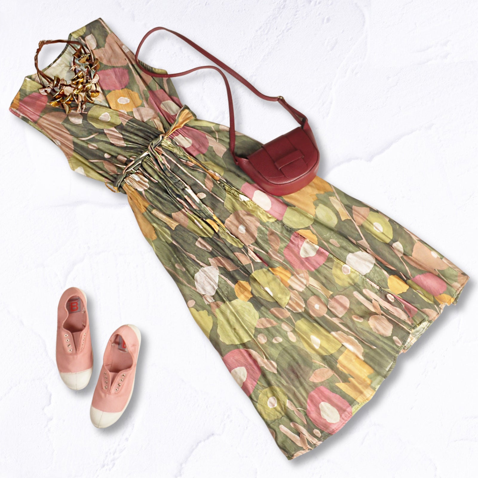 Painted flower mock wrap dress