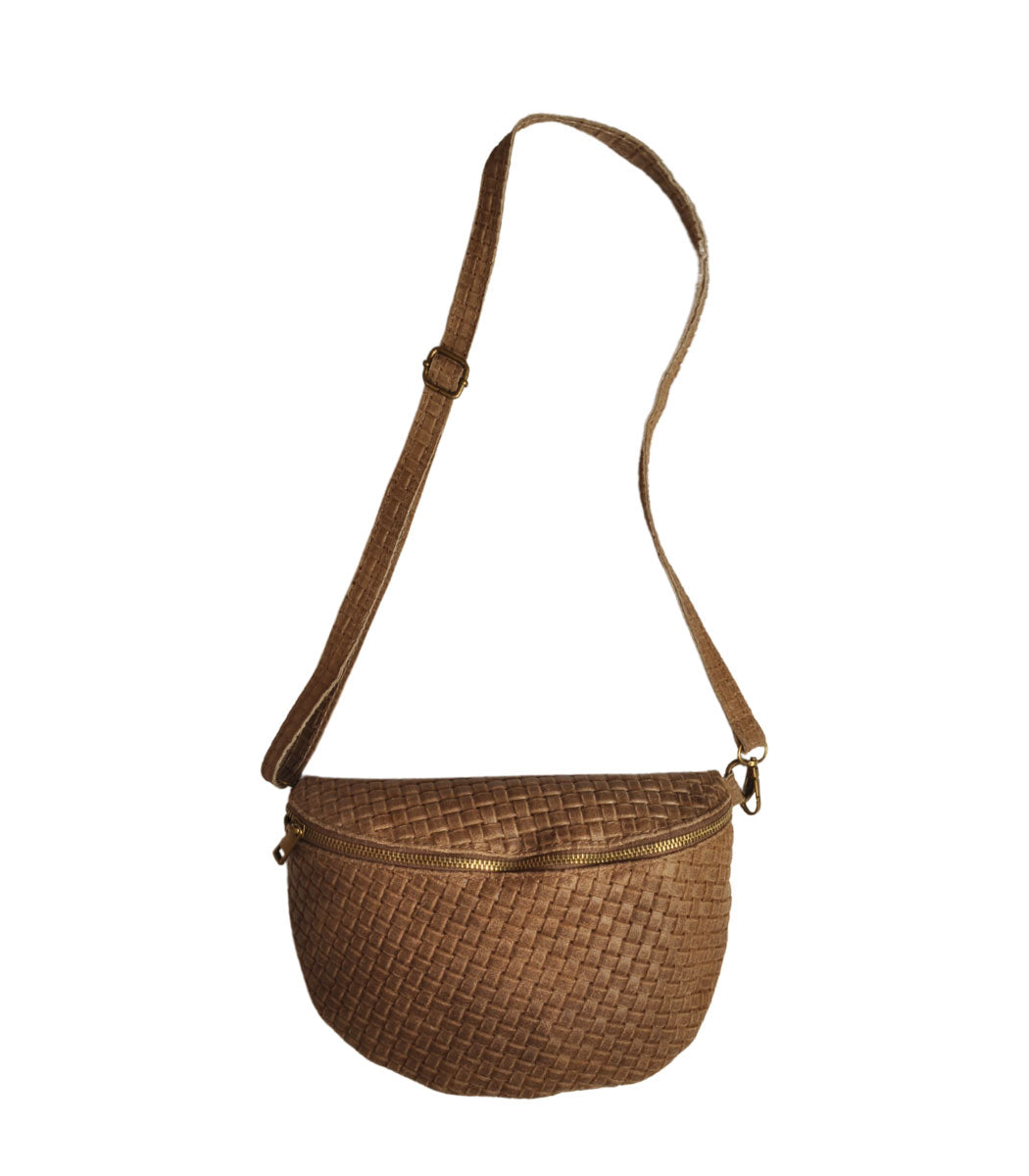 Genuine leather woven basket bag