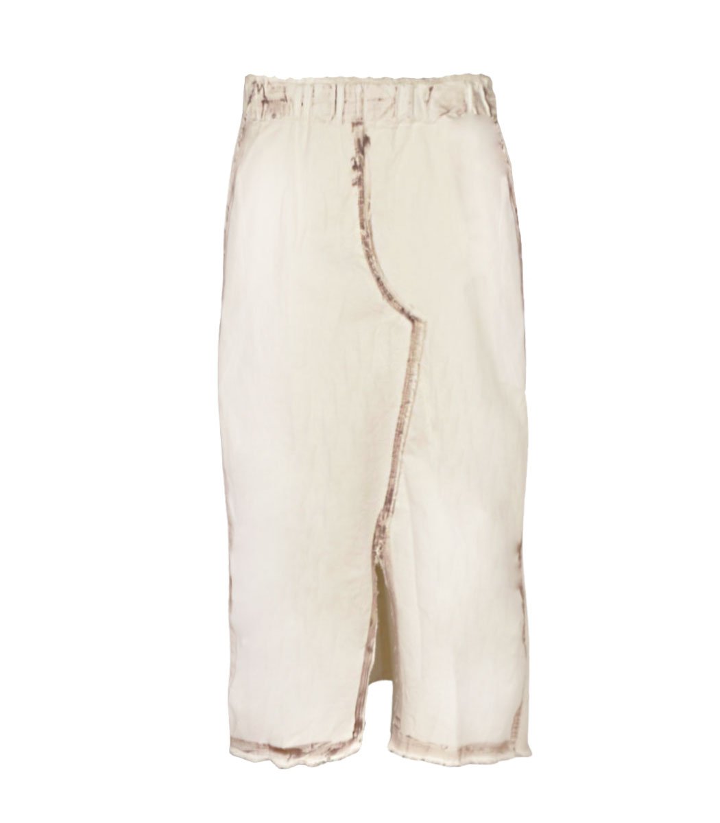 Raw-edge paint stripe skirt.