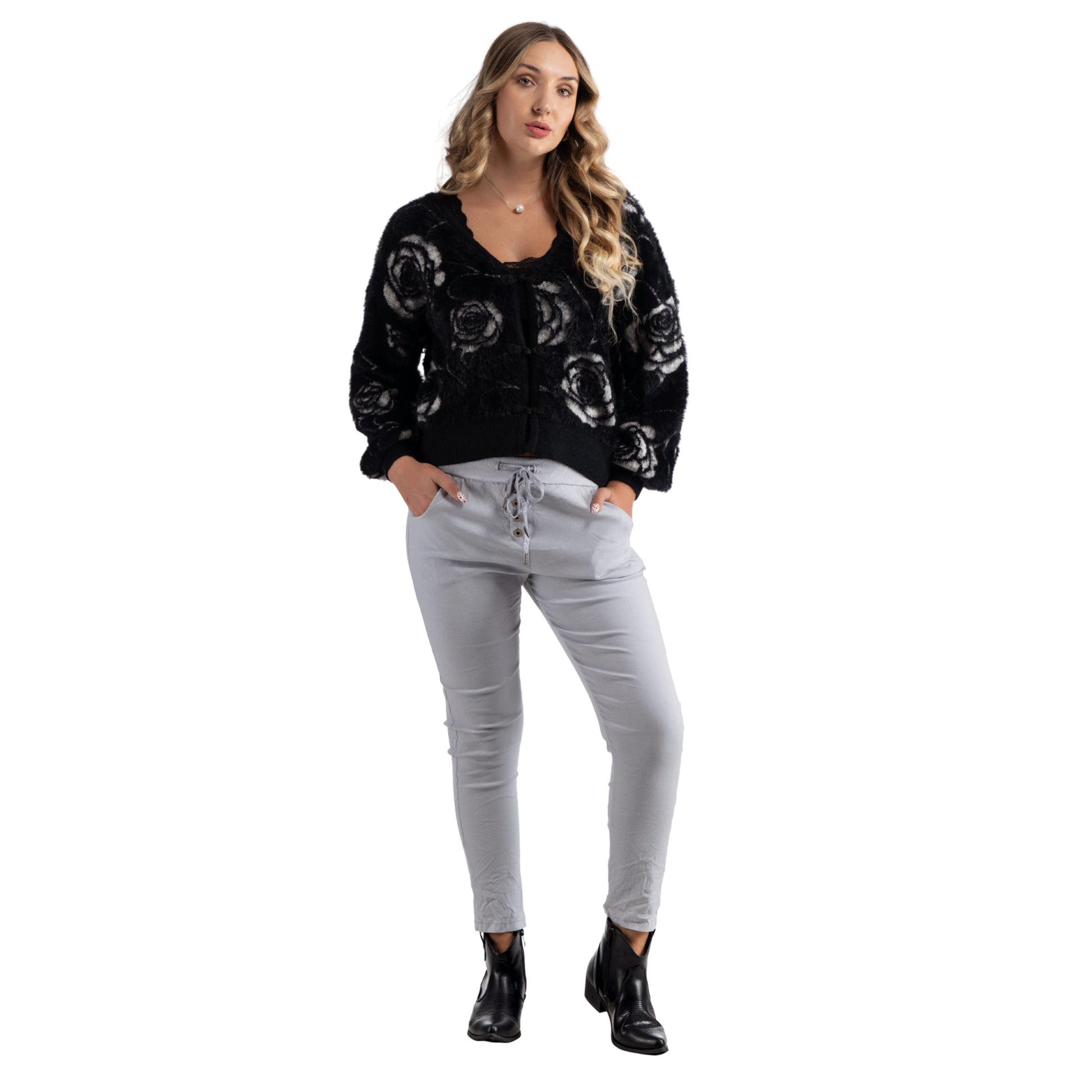 Rose print fluffy cardi