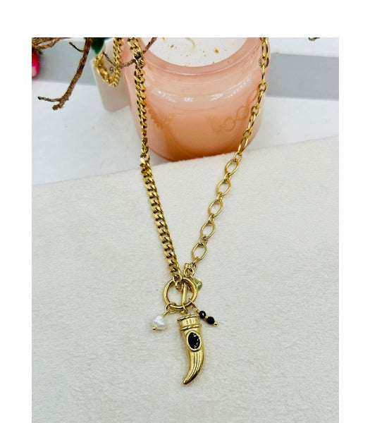 Stone horn chain necklace