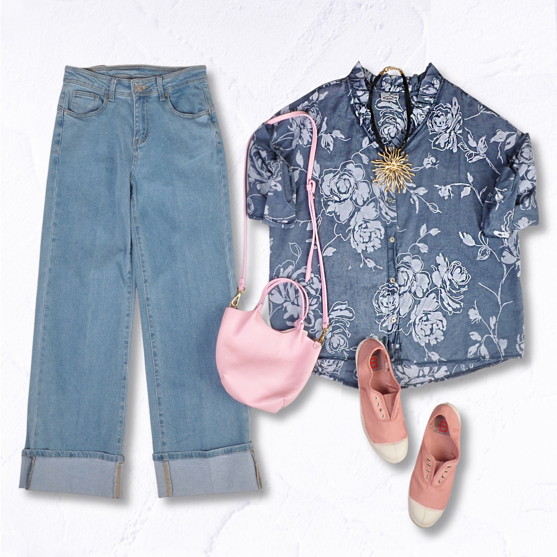 Wide leg turn up pants